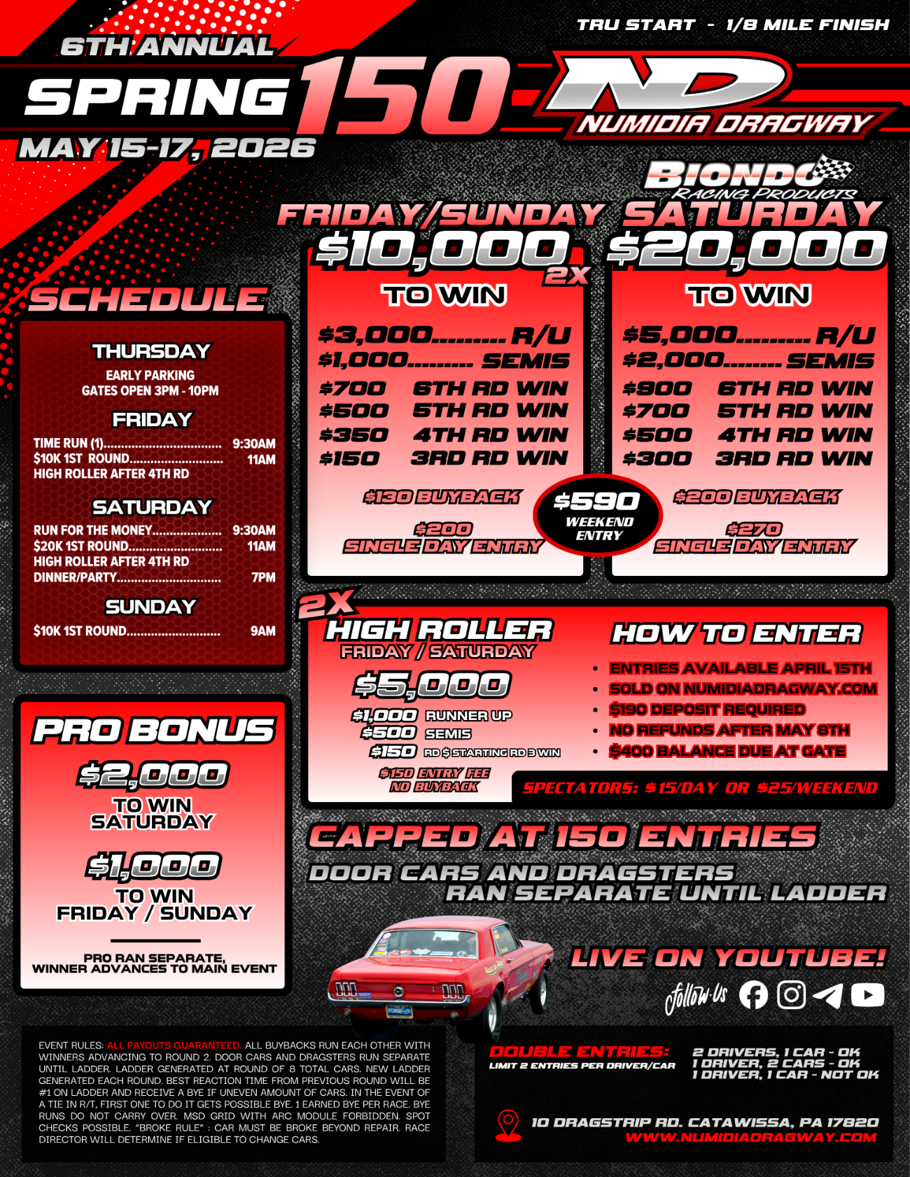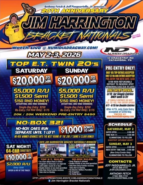 Numidia Dragway, 10 Dragstrip Road, Catawissa, PA 17820